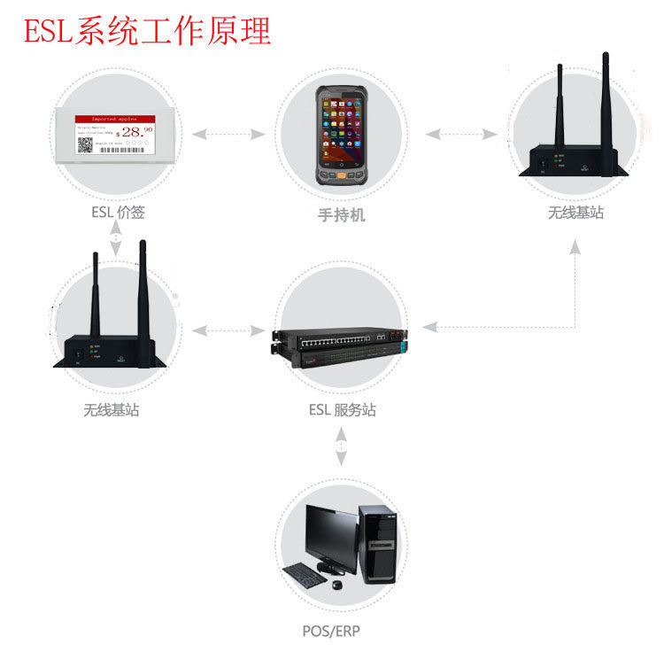5、整套电子货价标签系统中的软件、基站、标签、PDA手持机全部自主组网,通信稳定可靠,确保显示无差错。